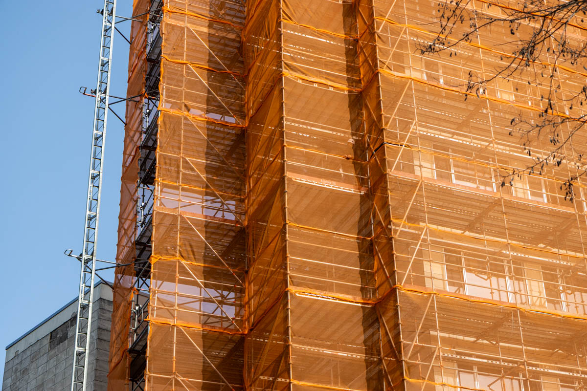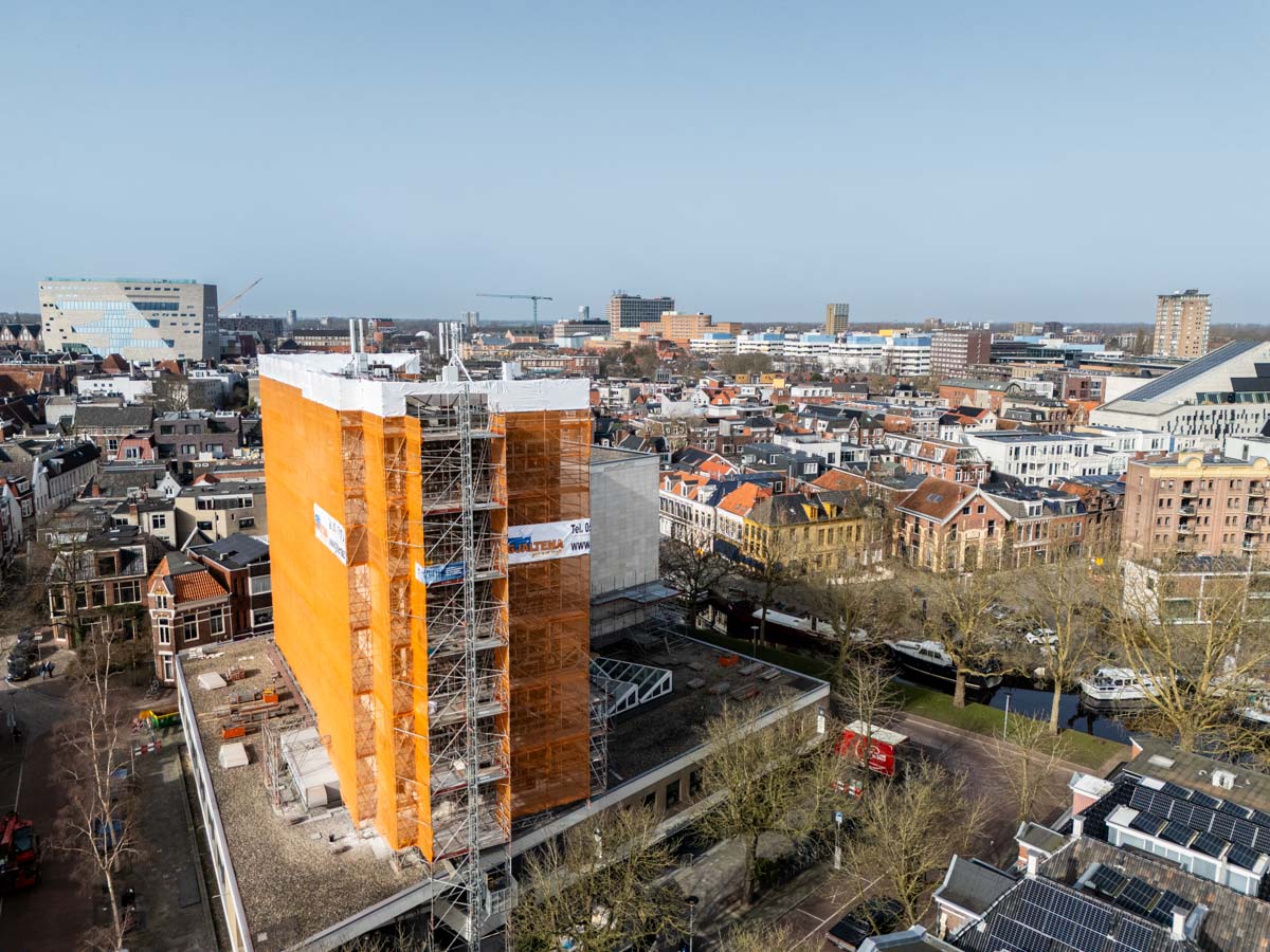 Weijdewold Vastgoed voert op deze locatie diverse werkzaamheden uit om het pand te vernieuwen en te verduurzamen. Denk aan het vervangen van natuursteen, het verbeteren van de isolatie en het plaatsen van nieuwe kozijnen met beglazing. De gevelsteiger vormt hierbij de basis voor alle werkzaamheden op hoogte.